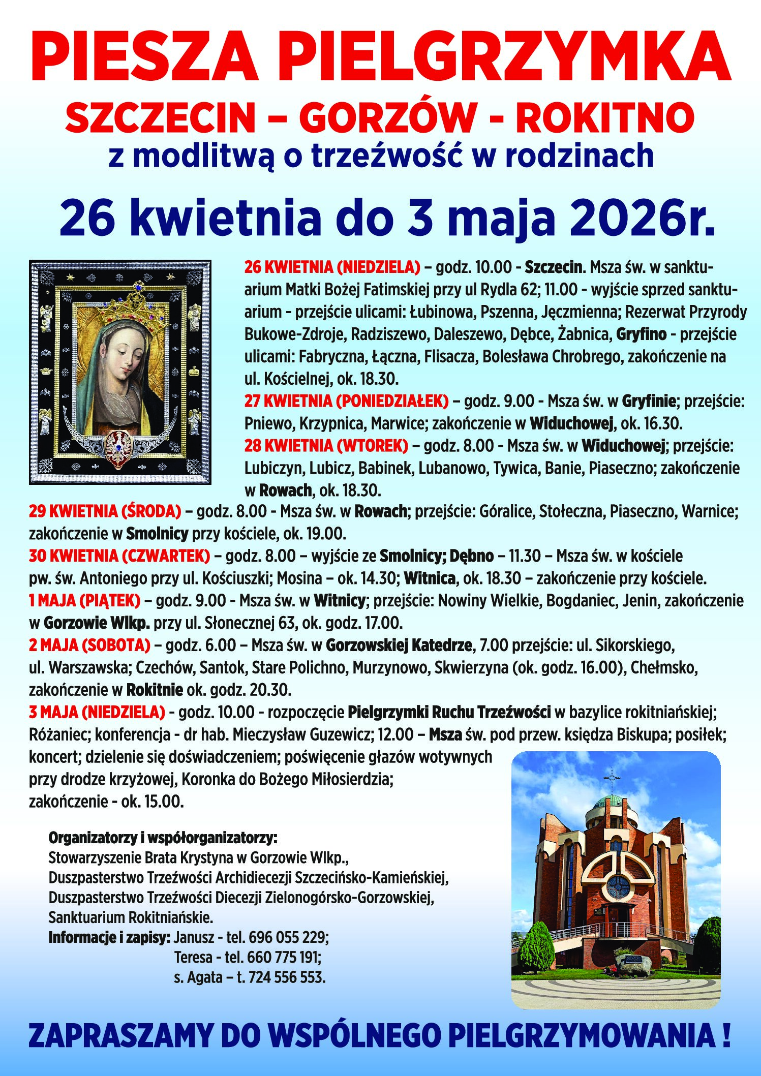 Piesza Pielgrzymka Szczecin-Gorzów-Rokitno z modlitwą o trzeźwość – 26.04-03.05.2026